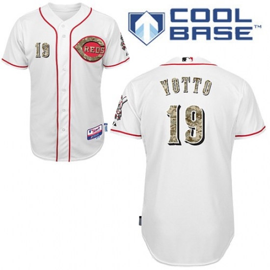 Men's Majestic Cincinnati Reds #19 Joey Votto Replica White USMC Cool Base MLB Jersey