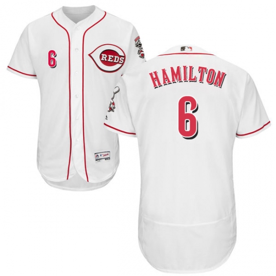 Men's Majestic Cincinnati Reds #6 Billy Hamilton White Home Flex Base Authentic Collection MLB Jersey