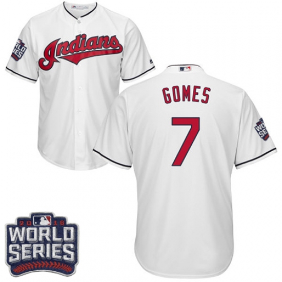 Home>MLB>Cleveland Indians>Yan Gomes>Men's Majestic Cleveland Indians #7 Yan Gomes White 2016 World Series Bound Flexbase Authentic Collection MLB Jersey