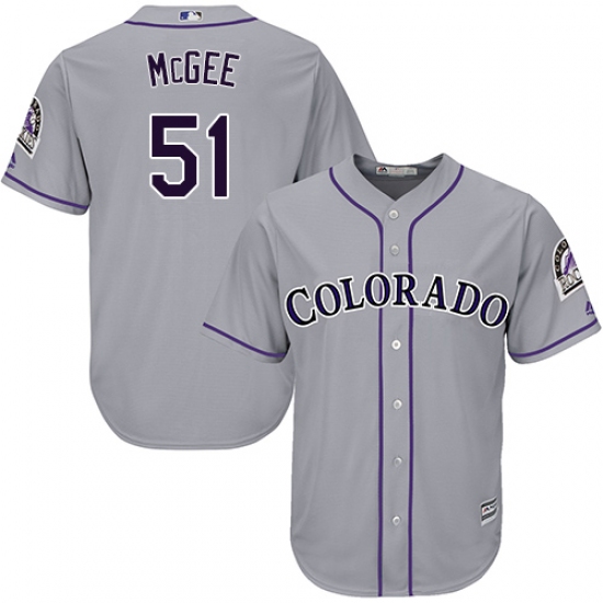 Home>MLB>Colorado Rockies>Jake McGee>Men's Majestic Colorado Rockies #51 Jake McGee Replica Grey Road Cool Base MLB Jersey