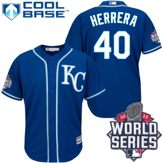 Home>MLB>Kansas City Royals>Kelvin Herrera>Men's Majestic Kansas City Royals #40 Kelvin Herrera Replica Blue Alternate 2 Cool Base 2015 World Series Patch MLB Jersey