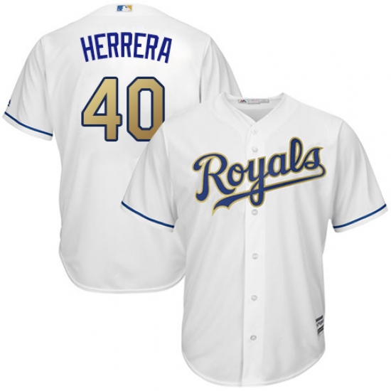 Home>MLB>Kansas City Royals>Kelvin Herrera>Men's Majestic Kansas City Royals #40 Kelvin Herrera Replica White Home Cool Base MLB Jersey