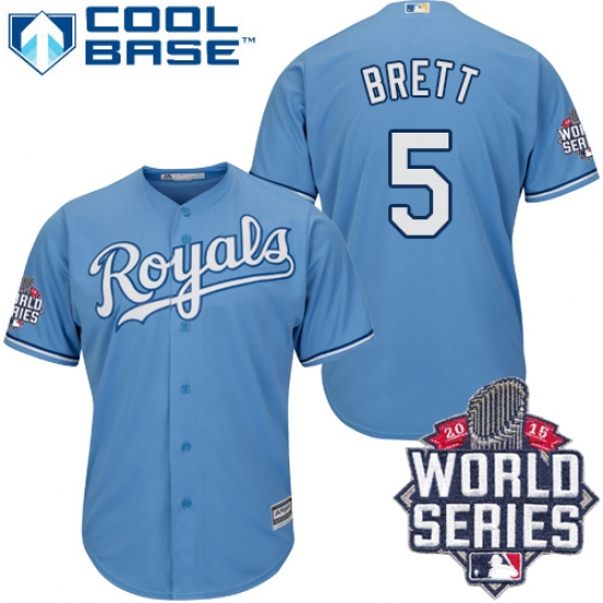 Home>MLB>Kansas City Royals>George Brett>Men's Majestic Kansas City Royals #5 George Brett Authentic Light Blue Alternate 1 Cool Base 2015 World Series Patch MLB Jersey