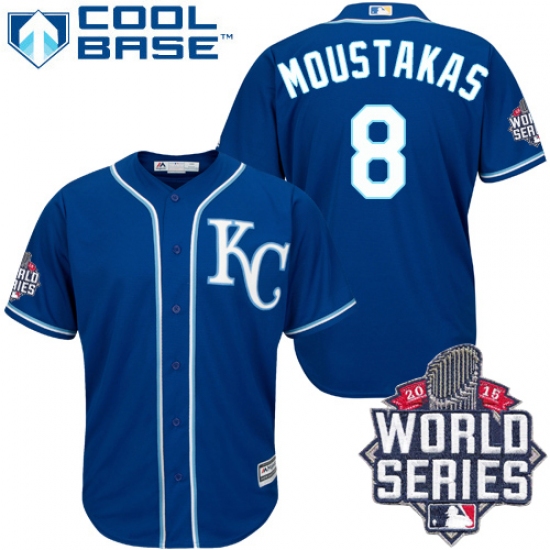 Home>MLB>Kansas City Royals>Mike Moustakas>Men's Majestic Kansas City Royals #8 Mike Moustakas Authentic Blue Alternate 2 Cool Base 2015 World Series