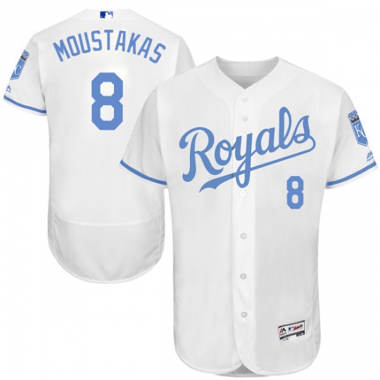 Home>MLB>Kansas City Royals>Mike Moustakas>Men's Majestic Kansas City Royals #8 Mike Moustakas Authentic White 2016 Father's Day Fashion Flex Base MLB Jersey