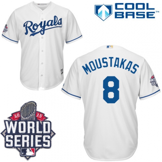 Home>MLB>Kansas City Royals>Mike Moustakas>Men's Majestic Kansas City Royals #8 Mike Moustakas Authentic White Home Cool Base 2015 World Series