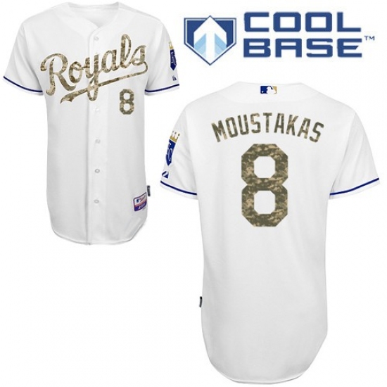 Home>MLB>Kansas City Royals>Mike Moustakas>Men's Majestic Kansas City Royals #8 Mike Moustakas Replica White USMC Cool Base MLB Jersey