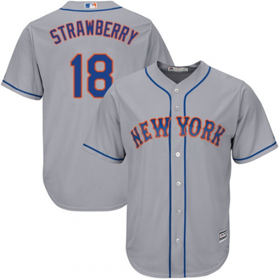 Home>MLB>New York Mets>Darryl Strawberry>Men's Majestic New York Mets #18 Darryl Strawberry Replica Grey Road Cool Base MLB Jersey