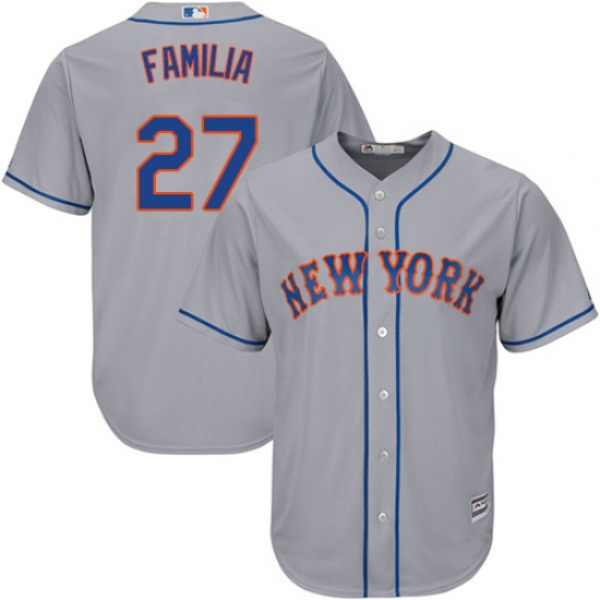 Home>MLB>New York Mets>Jeurys Familia>Men's Majestic New York Mets #27 Jeurys Familia Replica Grey Road Cool Base MLB Jersey