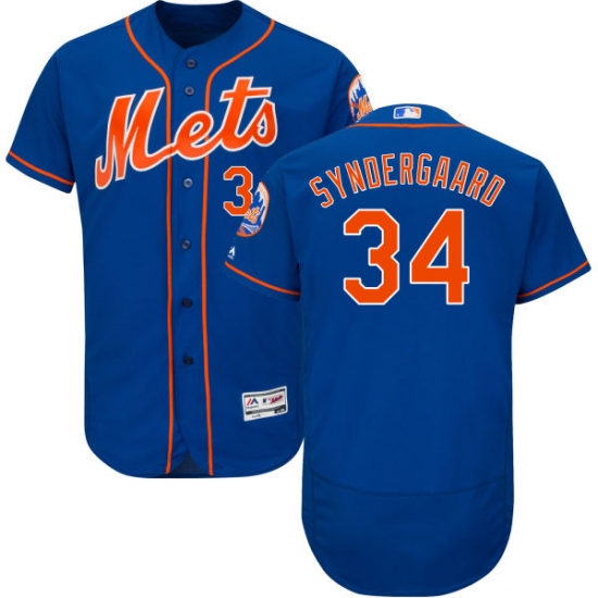 Home>MLB>New York Mets>Noah Syndergaard>Men's Majestic New York Mets #34 Noah Syndergaard Royal Blue Alternate Flex Base Authentic Collection MLB Jersey