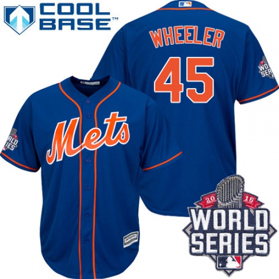 Men's Majestic New York Mets #45 Zack Wheeler Replica Royal Blue Alternate Home Cool Base 2015 World Series MLB Jersey