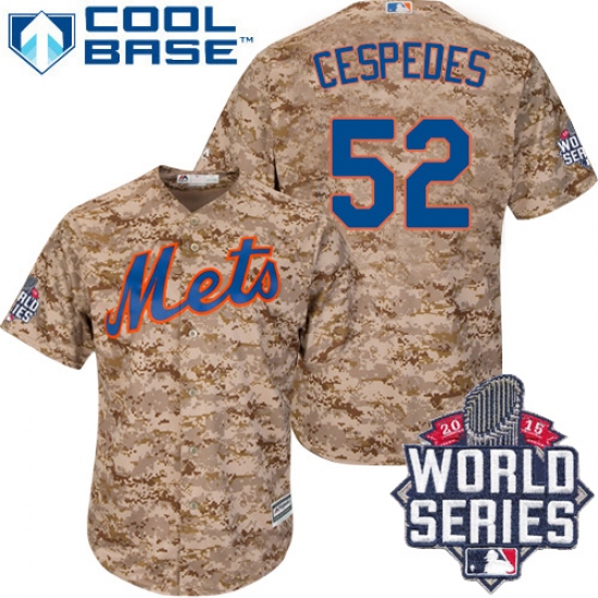 Men's Majestic New York Mets #52 Yoenis Cespedes Replica Camo Alternate Cool Base 2015 World Series MLB Jersey