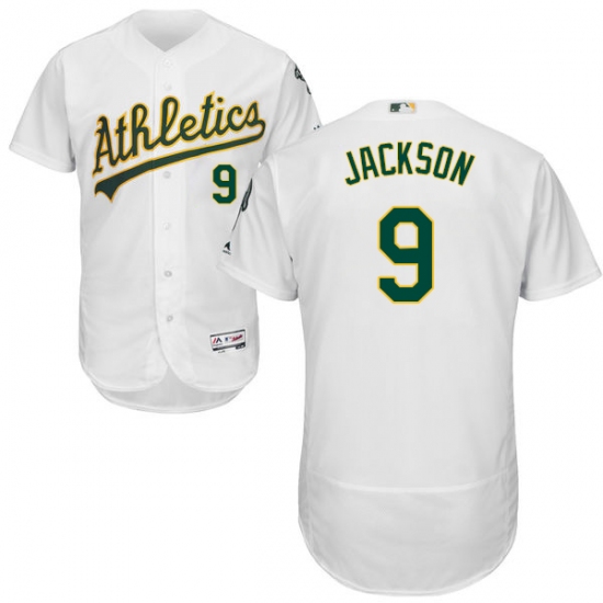 Home>MLB>Oakland Athletics>Reggie Jackson>Men's Majestic Oakland Athletics #9 Reggie Jackson White Home Flex Base Authentic Collection MLB Jersey