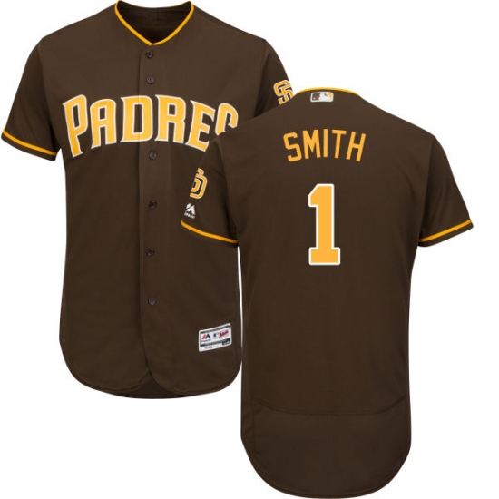 Home>MLB>San Diego Padres>Ozzie Smith>Men's Majestic San Diego Padres #1 Ozzie Smith Brown Alternate Flex Base Authentic Collection MLB Jersey