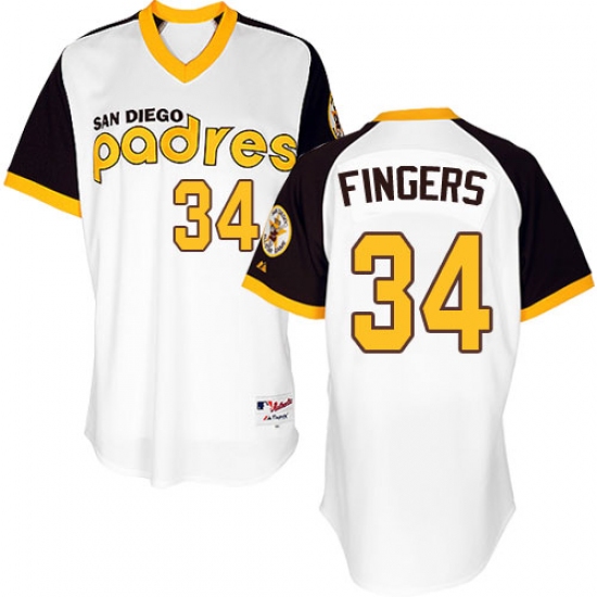 Men's Majestic San Diego Padres #34 Rollie Fingers Replica White 1978 Turn Back The Clock MLB Jersey