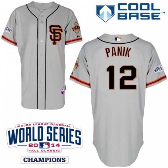 Home>MLB>San Francisco Giants>Joe Panik>Men's Majestic San Francisco Giants #12 Joe Panik Authentic Grey Road 2 Cool Base w/2014 World Series Patch MLB Jersey