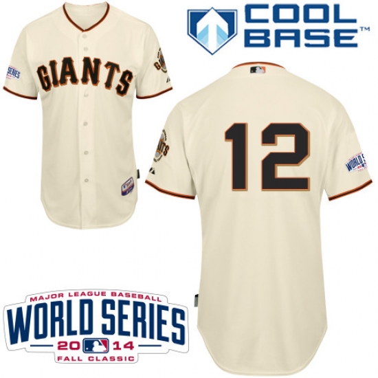 Men's Majestic San Francisco Giants #12 Joe Panik Replica Cream Home Cool Base w/2014 World Series Patch MLB Jersey