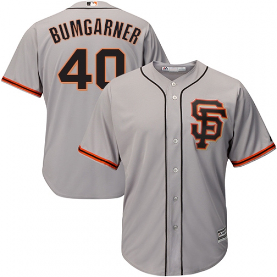 Home>MLB>San Francisco Giants>Madison Bumgarner>Men's Majestic San Francisco Giants #40 Madison Bumgarner Replica Grey Road 2 Cool Base MLB Jersey