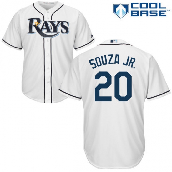 Home>MLB>Tampa Bay Rays>Steven Souza>Men's Majestic Tampa Bay Rays #20 Steven Souza Replica White Home Cool Base MLB Jersey