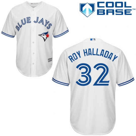 Home>MLB>Toronto Blue Jays>Roy Halladay>Men's Majestic Toronto Blue Jays #32 Roy Halladay Replica White Home MLB Jersey