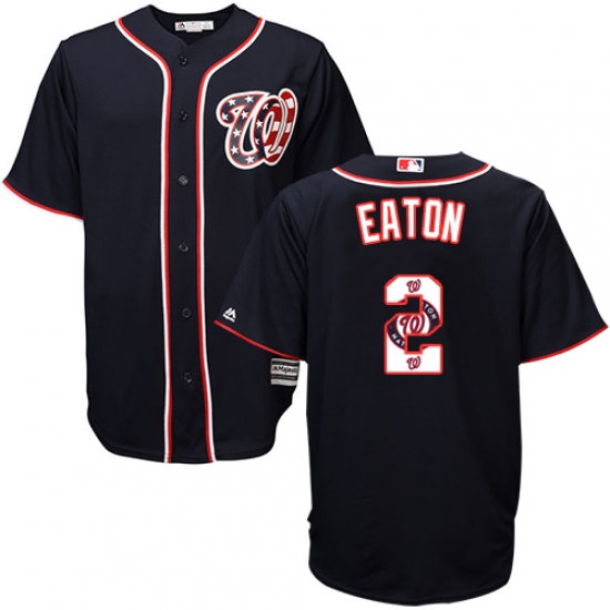 Men's Majestic Washington Nationals #2 Adam Eaton Authentic Navy Blue Team Logo Fashion Cool Base MLB Jersey