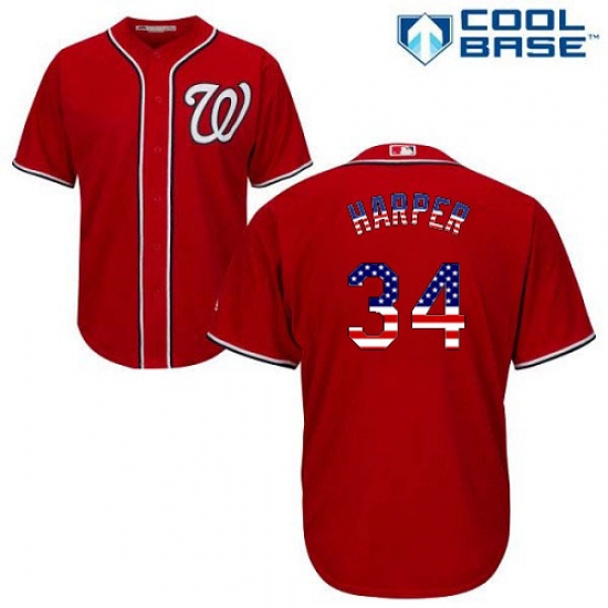 Home>MLB>Washington Nationals>Bryce Harper>Men's Majestic Washington Nationals #34 Bryce Harper Authentic Red USA Flag Fashion MLB Jersey