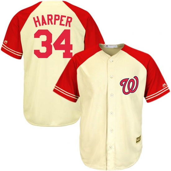 Men's Majestic Washington Nationals #34 Bryce Harper Replica Cream/Red Exclusive MLB Jersey