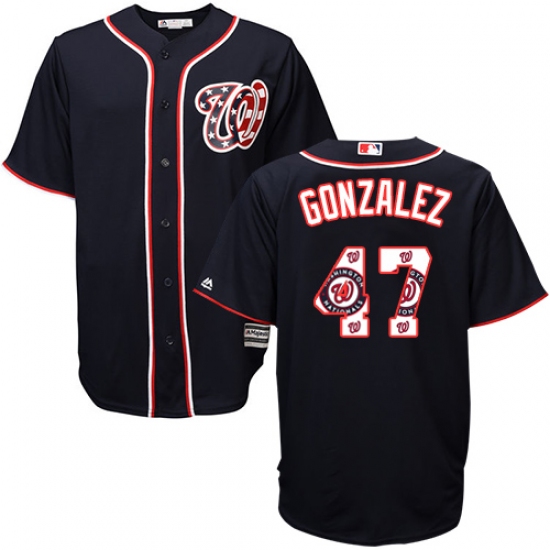 Men's Majestic Washington Nationals #47 Gio Gonzalez Authentic Navy Blue Team Logo Fashion Cool Base MLB Jersey