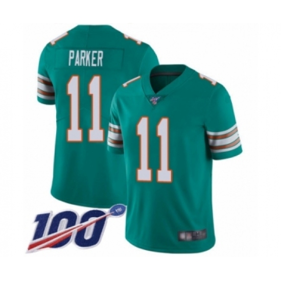 Men's Miami Dolphins #11 DeVante Parker Aqua Green Alternate Vapor Untouchable Limited Player 100th Season Football Jersey