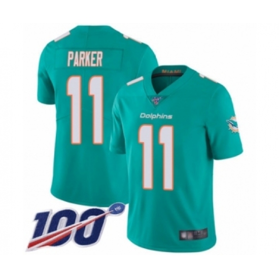 Men's Miami Dolphins #11 DeVante Parker Aqua Green Team Color Vapor Untouchable Limited Player 100th Season Football Jersey