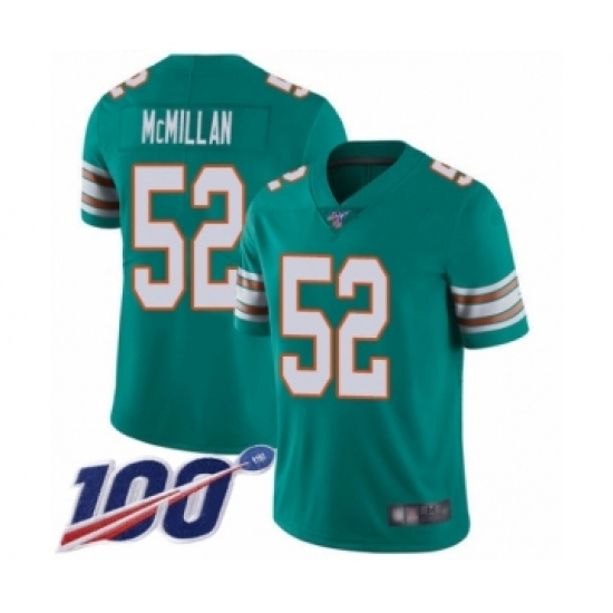 Men's Miami Dolphins #52 Raekwon McMillan Aqua Green Alternate Vapor Untouchable Limited Player 100th Season Football Jersey