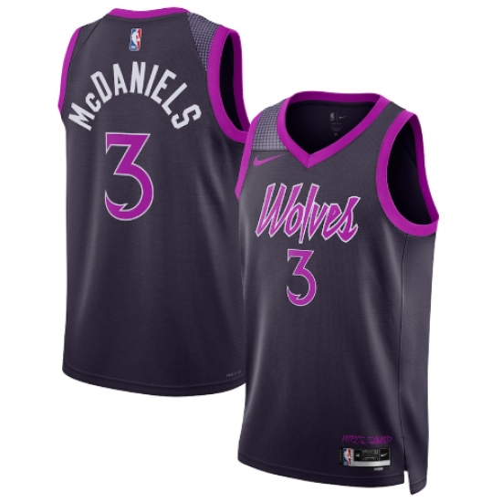 Men's Minnesota Timberwolves #3 Jaden McDaniels Purple 2025-26 City Edition Stitched Basketball Jersey