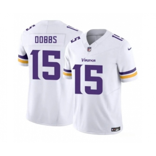 >Men's Minnesota Vikings #15 Josh Dobbs White 2023 F.U.S.E. Vapor Untouchable Limited Stitched Jersey