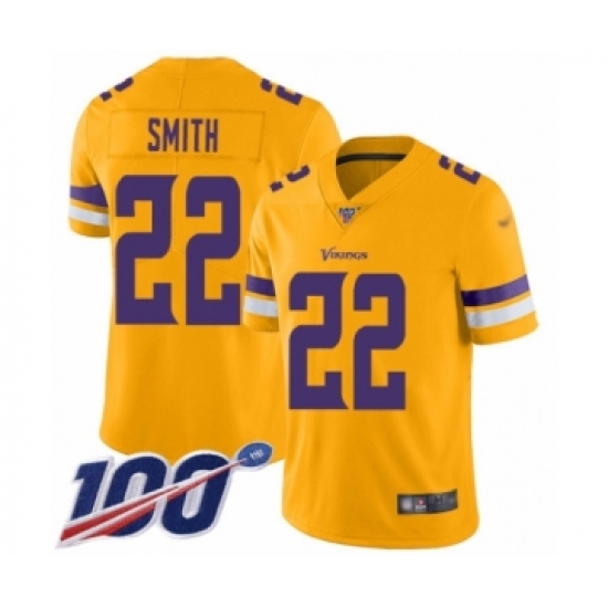 >Men's Minnesota Vikings #22 Harrison Smith Limited Gold Inverted Legend 100th Season Football Jersey