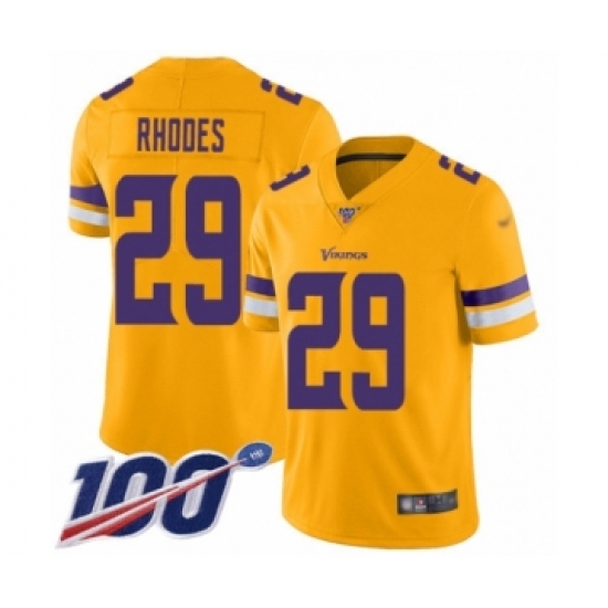 >Men's Minnesota Vikings #29 Xavier Rhodes Limited Gold Inverted Legend 100th Season Football Jersey