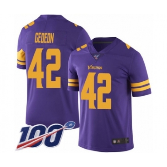 >Men's Minnesota Vikings #42 Ben Gedeon Limited Purple Rush Vapor Untouchable 100th Season Football Jersey