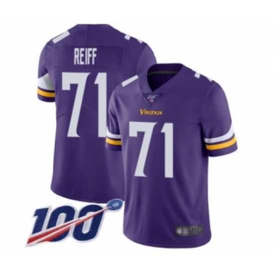 Men's Minnesota Vikings #71 Riley Reiff Purple Team Color Vapor Untouchable Limited Player 100th Season Football Jersey