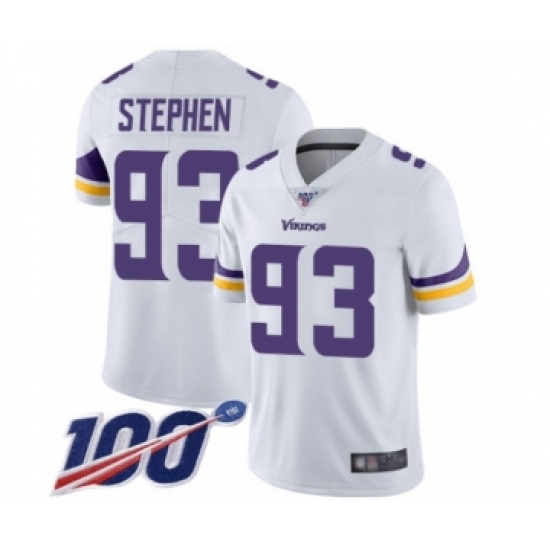 Men's Minnesota Vikings #93 Shamar Stephen White Vapor Untouchable Limited Player 100th Season Football Jersey