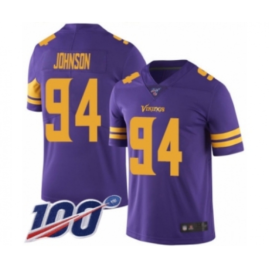 Men's Minnesota Vikings #94 Jaleel Johnson Limited Purple Rush Vapor Untouchable 100th Season Football Jersey