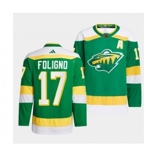 Men's Minnesota Wild #17 Marcus Foligno Green 2022-23 Reverse Retro Stitched Jersey