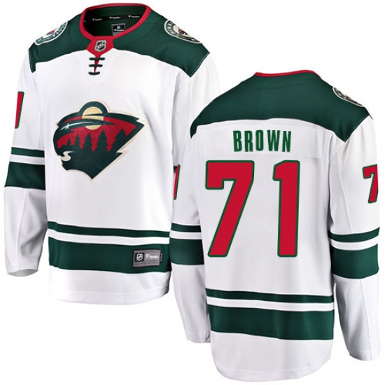 Men's Minnesota Wild #71 J T Brown Authentic White Away Fanatics Branded Breakaway NHL Jersey