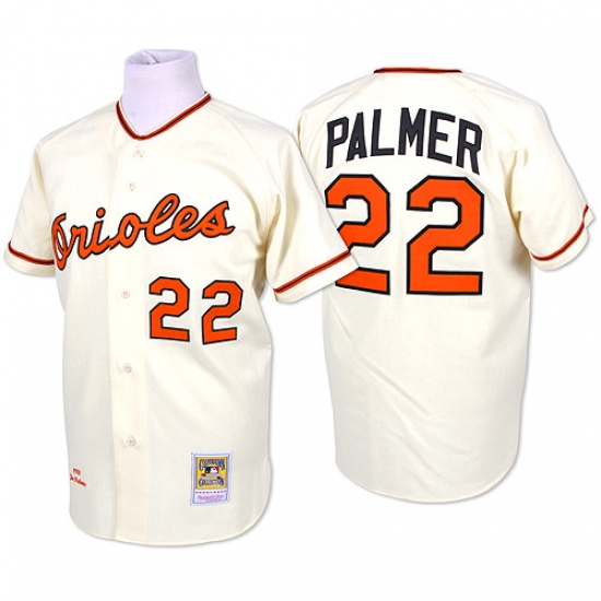 Men's Mitchell and Ness Baltimore Orioles #22 Jim Palmer Replica Cream Throwback MLB Jersey