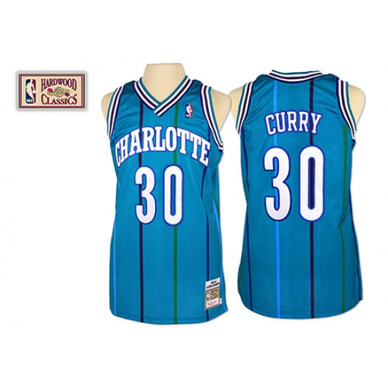 Men's Mitchell and Ness Charlotte Hornets #30 Dell Curry Authentic Light Blue Throwback NBA Jersey