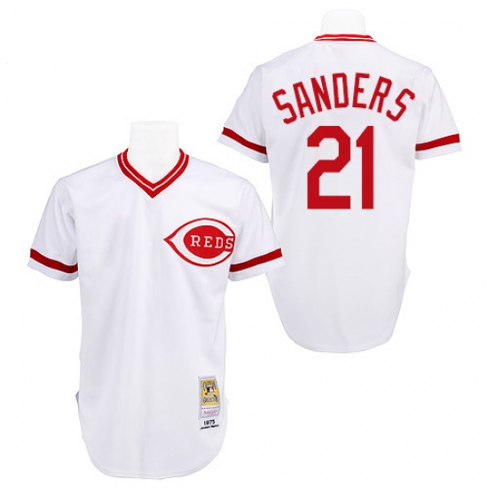 Home>MLB>Cincinnati Reds>Reggie Sanders>Men's Mitchell and Ness Cincinnati Reds #21 Reggie Sanders Replica White Throwback MLB Jersey