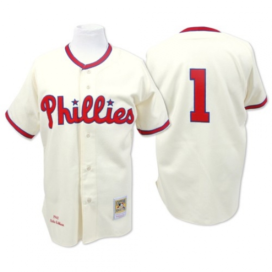 Men's Mitchell and Ness Philadelphia Phillies #1 Richie Ashburn Authentic Cream Throwback MLB Jersey