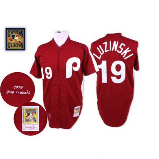 Men's Mitchell and Ness Philadelphia Phillies #19 Greg Luzinski Authentic Red Throwback MLB Jersey