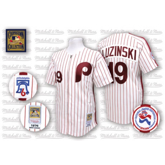 Men's Mitchell and Ness Philadelphia Phillies #19 Greg Luzinski Replica White/Red Strip Throwback MLB Jersey