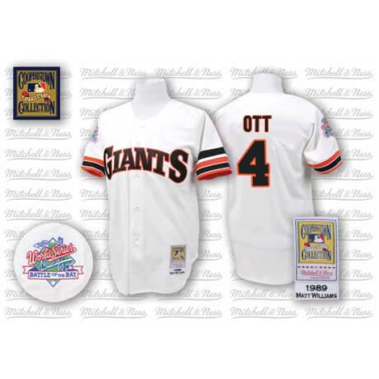 Men's Mitchell and Ness San Francisco Giants #4 Mel Ott Replica White Throwback MLB Jersey