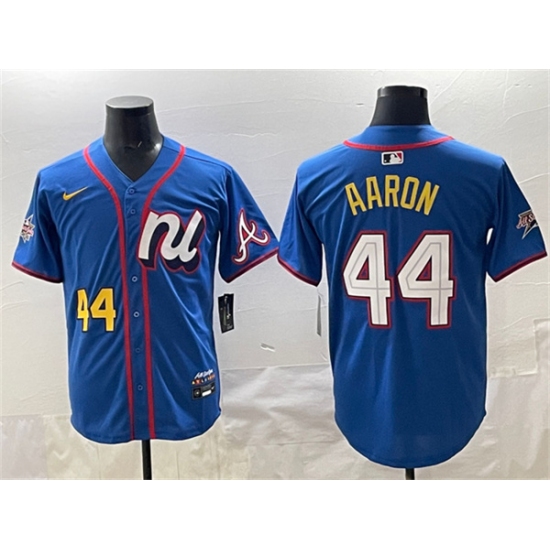 >Men's National League #44 Hank Aaron Blue 2025 All-Star Edition Limited Stitched Baseball Jersey