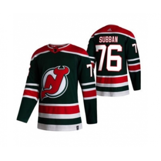 >Men's New Jersey Devils #76 P.K. Subban Green 2020-21 Reverse Retro Alternate Hockey Jersey